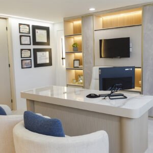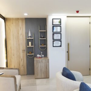 En conjunto, este proyecto de diseño de interiores fue ejecutado para lograr transformar el consultorio en un espacio que equilibra perfectamente la elegancia y la funcionalidad. Cada elemento ha sido seleccionado y colocado con cuidado, resultando y creando un ambiente armonioso que invita a la relajación y es el reflejo de una sofisticación moderna. Este diseño es con mucho estilo que asegura que cada visita al consultorio sea una experiencia placentera y revitalizante para los pacientes.